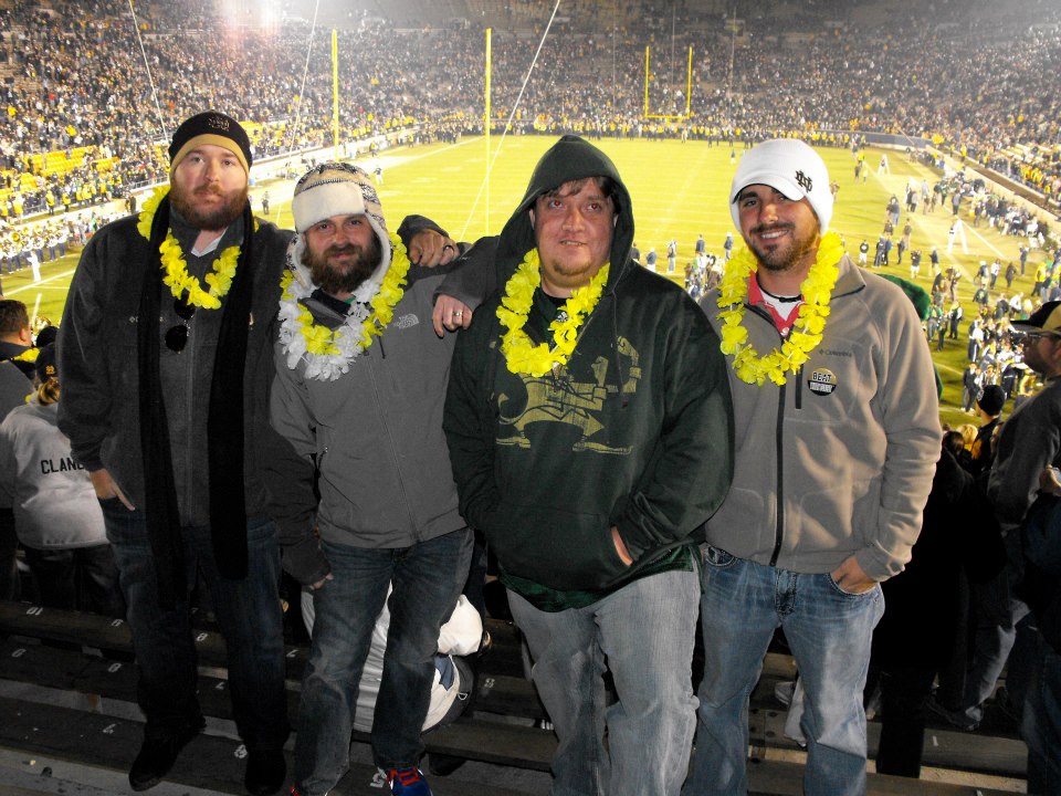 The first trip is a blur, just three of us: me, Brandon Speck, and Brad Campbell. We drove up the day before a nationally-ranked Utah game. Brad and I had toured Notre Dame the year before but walking into the stadium for the first time was overwhelming. I hung back while my friends grabbed food and fought back tears. Everything caught up to me, from the stress of traveling to the excitement of finally being there. Then we won, and the first trip instantly became unforgettable.